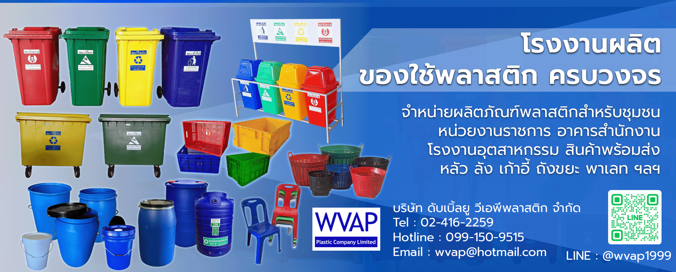 บริษัท ดับเบิ้ลยู วีเอพีพลาสติก จำกัด ผู้ผลิตและจำหน่ายผลิตภัณฑ์พลาสติก ครัวเรือน โรงงานอุตสาหกรรม พาเลท หลัว ลัง เก้าอี้ ถังขยะมีล้อเลื่อนทุกขนาด